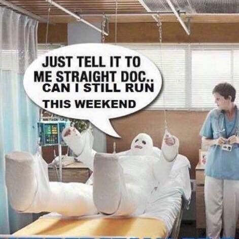 So naturally I’m not just adopting a common sense approach of “if it hurts, don’t do it” that’s what a normal person would do, I’m a runner, first thought is always…..